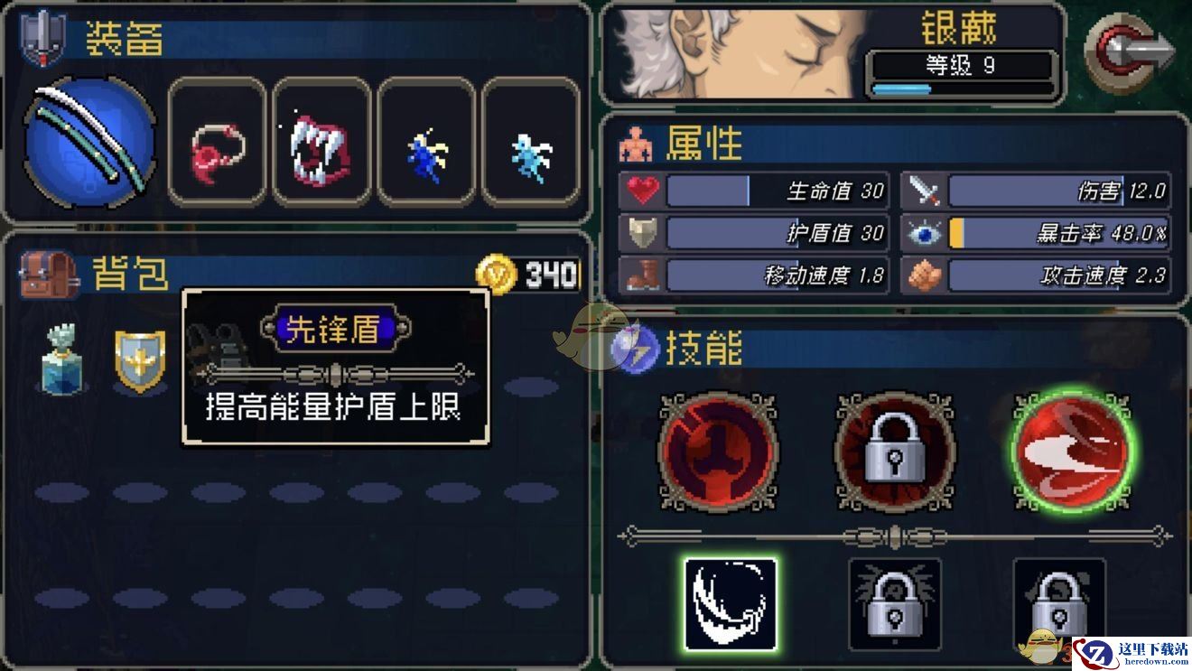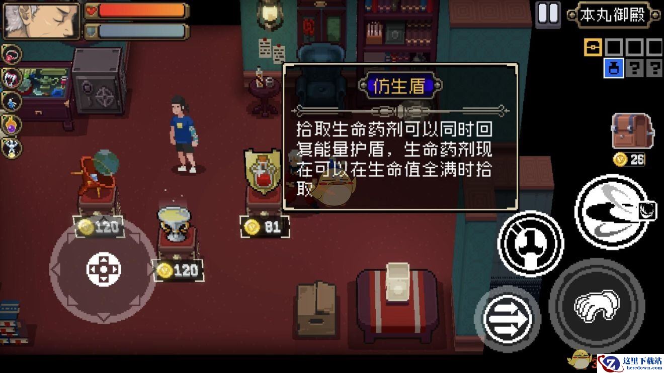 3、很多时候玩家会因为护盾值不够的情况,被小怪给秒杀,这个时候就会用到我们的仿生盾。
