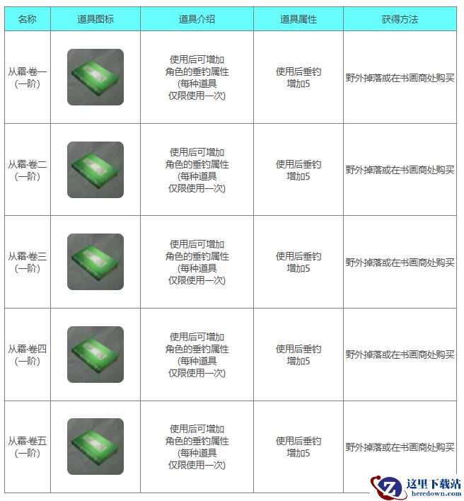 垂钓提升道具是从霜,该系列书籍一共是五种,从最基础的卷一到卷五,具体如下所示。