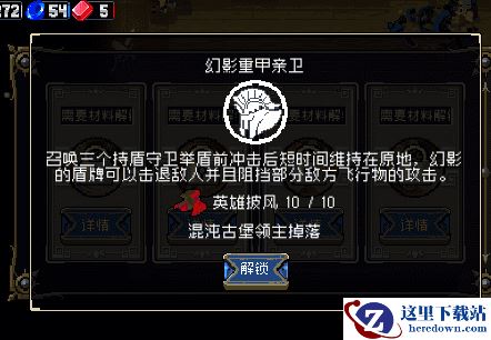 召唤三个持盾守卫举盾前冲击后短时间维持在原地,幻影的盾牌可以击退敌人并且阻挡部分地方飞行物的攻击。