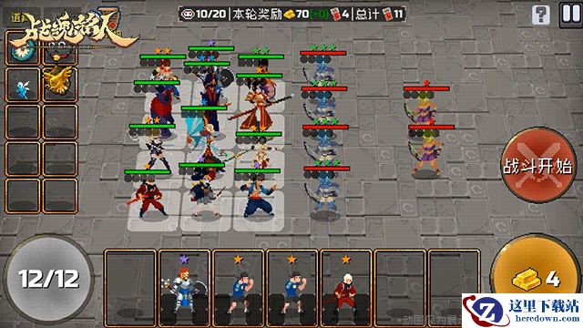 开始战斗:将棋子从等候区拖至场上区域,击败所有敌人获得奖励,包括金块和春节红包。