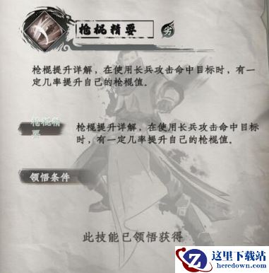 秘技属性-枪棍精要:在使用长兵攻击命中目标时,有一定几率提升自己的枪棍值。