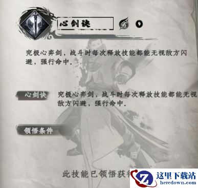 心剑诀是一个传承已久,适用于剑术流派的护体秘技,可以使技能无视敌方闪避,必定命中。
