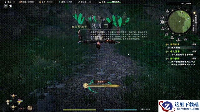 前往鸿月门(900,1550)找到劳工,接取任务,前往(860,1550);
