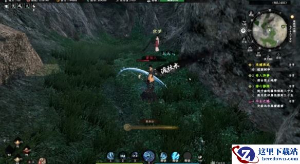 前往澄心湖( 992.1685)触发事件,蒙面人即将杀害敛梦,侠士登场击败蒙面人。
