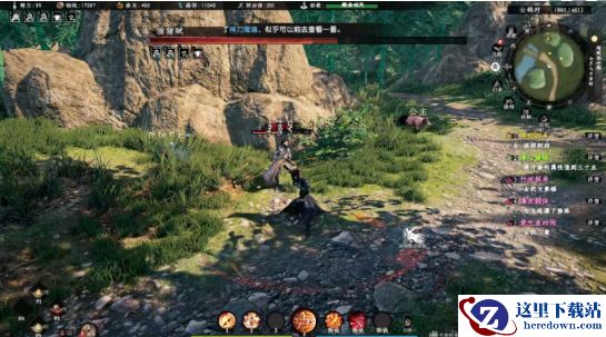 1、在云鹤村中倾听NPC甄寅(1090,1477)的自言自语,得知他养的猪被偷猪贼偷走了,最后见到他的猪是往清然林的方向。