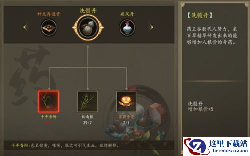 2、千年香附是制作洗髓丹的材料之一,洗髓丹能够增加角色5根骨,是培养角色的重要丹药。
