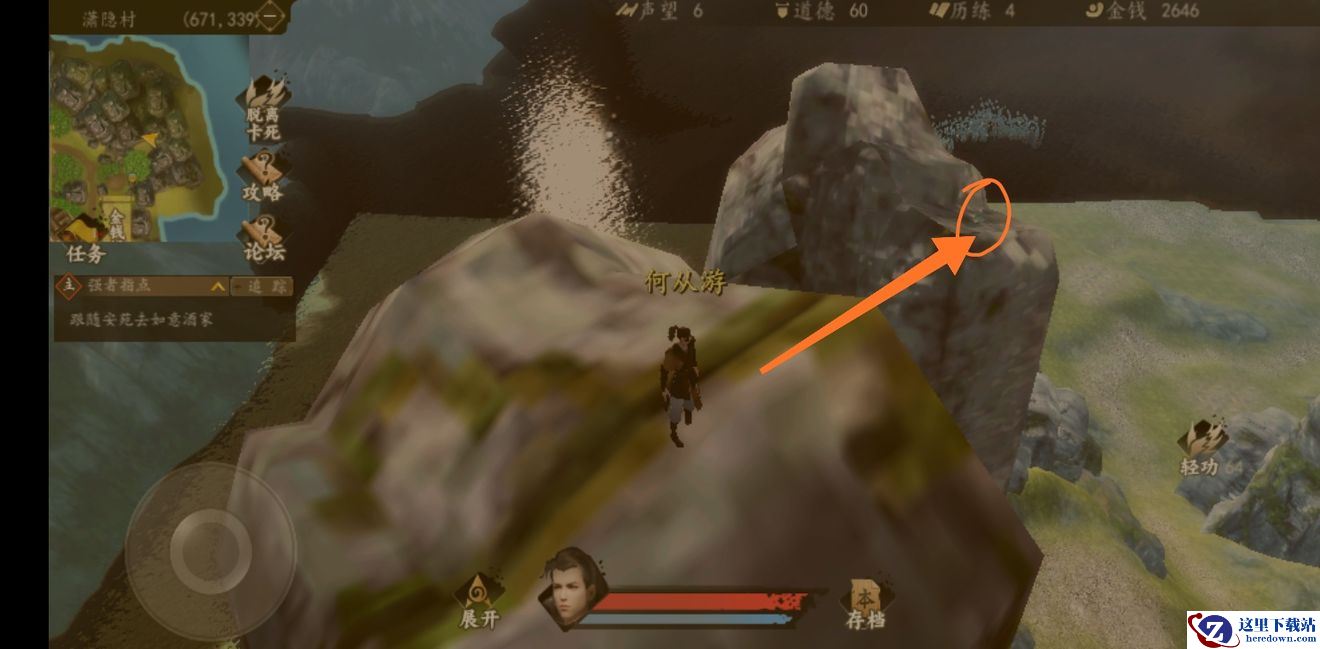 1、新手村神秘高手那个山上,图上画圈位置: