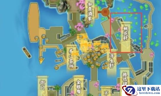 杭城武馆在杭州地图上,在桃花轩的左上方。