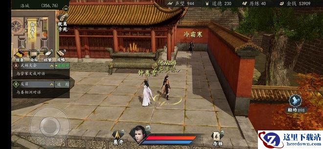 4.跑到洛城白马寺对话冷霜寒,打开机关匣在点冷霜寒第一个选项就行,然后陪他去风楼救师父,接触后唐门交任务(任务做完冷霜寒也是可以招募的)。