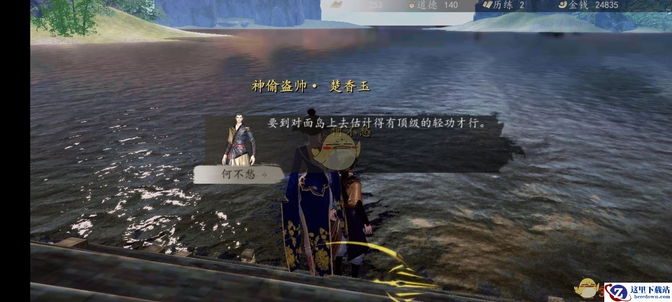 4、玩家拥有足够的轻功值后,即可来到岛上,岛上有座英雄冢。