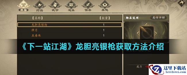 以上就是小编整理的关于《下一站江湖》龙胆亮银枪获取方法介绍的全部内容,更多游戏攻略请持续关注手游网!