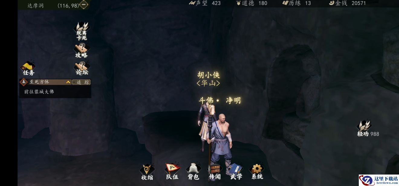 6、进少林达摩洞(需打扫地僧)从对面石壁跳到这个台子上即可获取。