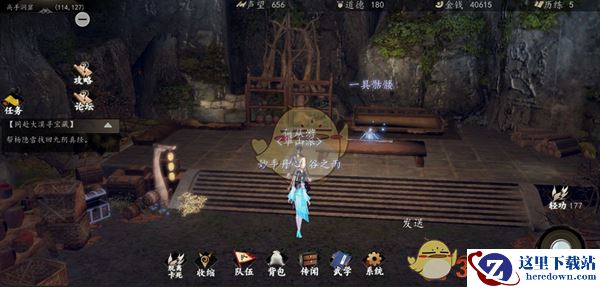 于是大致可以猜出,这个倒霉蛋为争夺名家绝学遭到江湖人追杀,本打算躲在洞穴内逃此一劫,奈何伤势过重无力享受,最后一命呜呼。打开包裹,你便能不费吹灰之力获得其用生命换来的名家绝学。