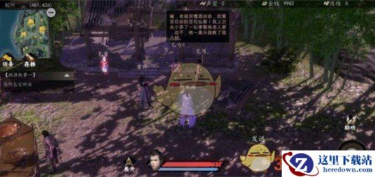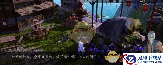 首先,我们在潇隐村的路边看到一个奇怪的老乞丐,点击对话,发现他醉醺醺地嚷嚷着没酒了。