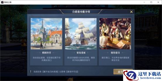 当玩家40级时,就能接到建造自建港的支线任务。任务非常简单,只要跟着导航不断与NPC聊天,就能获得建港许可证。