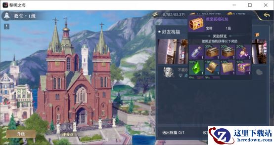 在教堂中,玩家可以给自己的好友送祝福与接受玩家的祝福,祝福礼包的奖励非常不错:漂流瓶、设计图、藏宝图、银币、魂石等等。