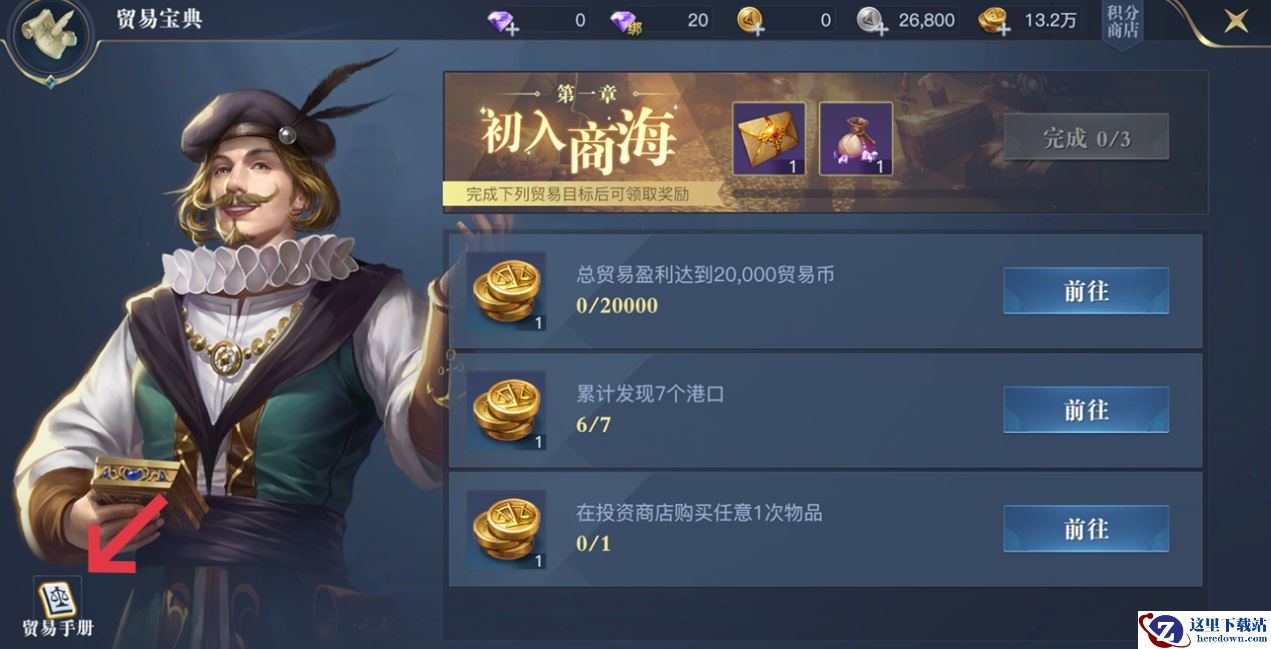 冒险家们在通过全部贸易系统教学任务后,若是对贸易玩法依旧不熟悉,可以打开贸易宝典左下角的贸易手册。