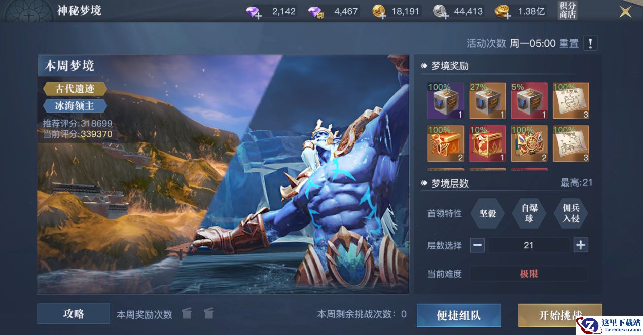 神秘梦境需要我们组建队伍尽可能挑战高层,战胜两个加强BOSS通关,通关副本即可按照层数获得奖励。通关高层可以获得更高品质船装、图纸、魂石、船只技能、命运石、船舱图纸。
