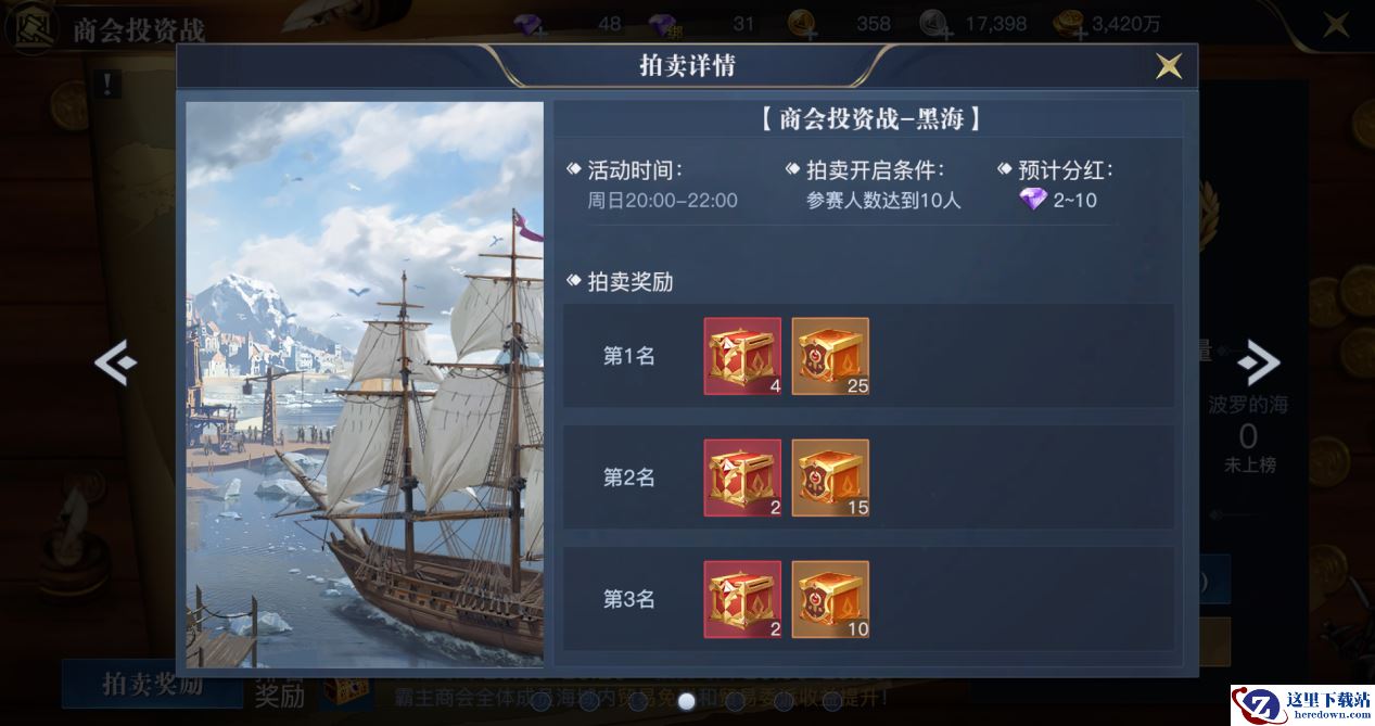 每击败一条宝船会获得对应的奖励,将放入商会拍卖。拍卖所获钻石将与商会成员分红,没有卖出的物品则由系统回收到世界拍卖,并同样分红成员等额绑钻。