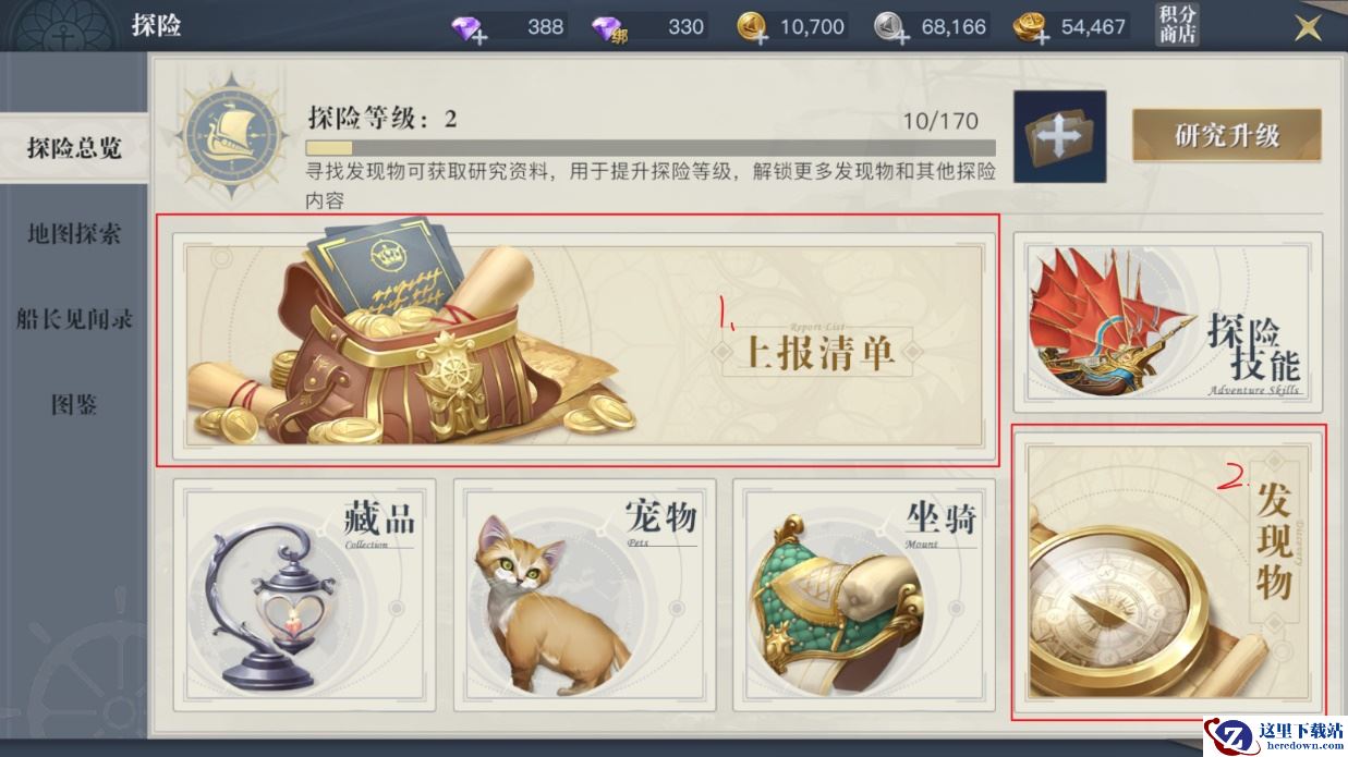 1.非常推荐我们在闲暇之余,前往发现物线索中的地图,将解锁的发现物收集一下,获取足够的“研究资料”以提升探险等级。
