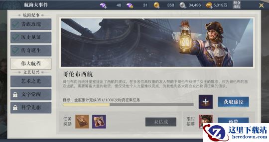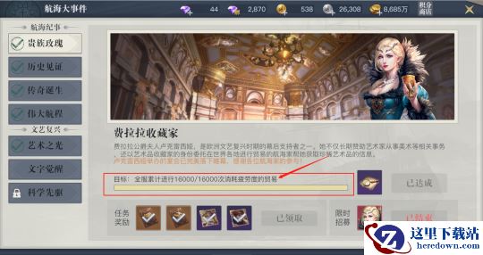 当进度条满后,全服玩家均可领取任务奖励。包含航海士职位证(解锁航海士第二槽位)、A级航海士招募信(直接招募该航海士)。