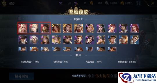 限时UP招募池招募几率与普通池相同,但SS级航海士只有三位,比普通池更精准。由大事件解锁的全新SS航海士,限时期间只存在UP招募池中,UP招募池结束后才加入普通池,想要第一时间获取该航海士的玩家,绝对不能错过UP招募池。