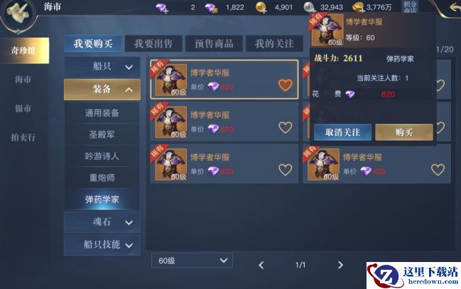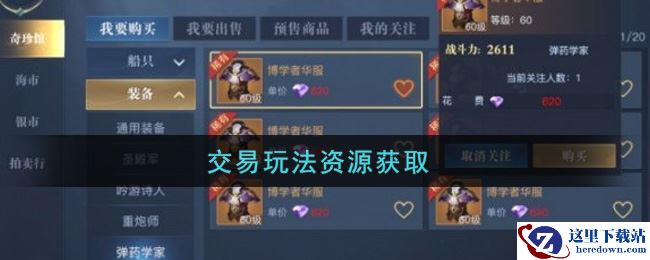 (6)关注商品:在架以及预售期的船只及装备可点击关注, 一个角色最多同时关注20件珍品商品。