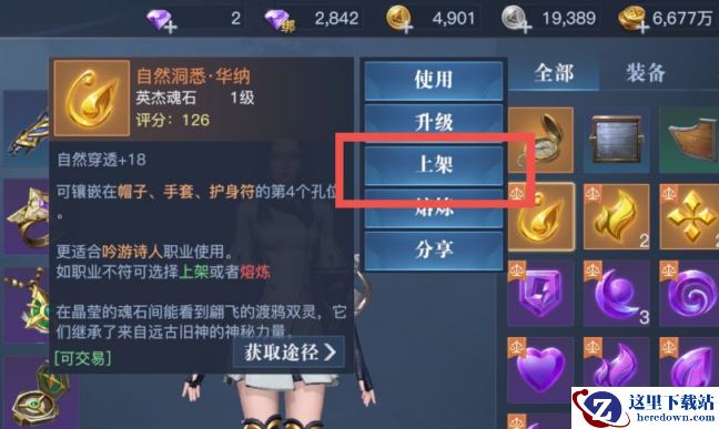 同时,我们也可以直接在背包中选择自己想要出售的物品,点击“上架”或是“出售”来进行交易。