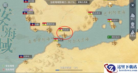 例如我们需完成“画画的男孩”任务,就需要根据发生地点,打开世界地图航行前往“马拉加”。