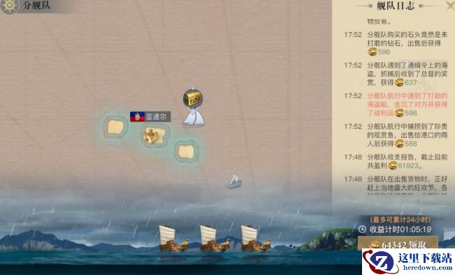 启航后的分舰队处于自动贸易状态,每半小时汇报一次收益结算,最多可积累24小时的挂机收益,超过24小时后的挂机收益将不再计入,建议每天及时领取贸易,刷新分舰队出海。