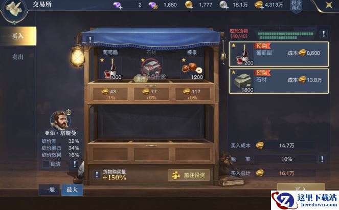 我们每天都可以进行多次海上贸易并获得大量贸易币。其中出售流行商品能获得极高利润,且不增加疲劳度;普通商品会根据商品等级增加不同的疲劳度,疲劳度到达上限后,我们将无法出售商品。
