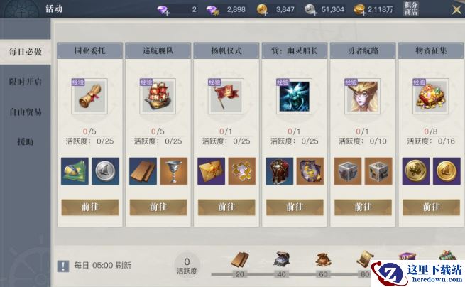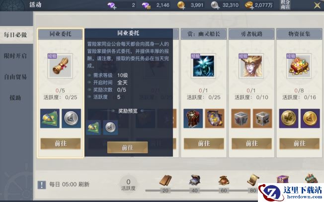 航海奖赏共分为七个板块,在开启后每天都可解锁一个新板块,每个板块中都有十个子任务。我们在完成第二个板块“扬帆起航”中的子任务“完成5次地中海寻宝”后,即可获得一张所罗门王藏宝图。这个任务十分简单,非常推荐大家完成。