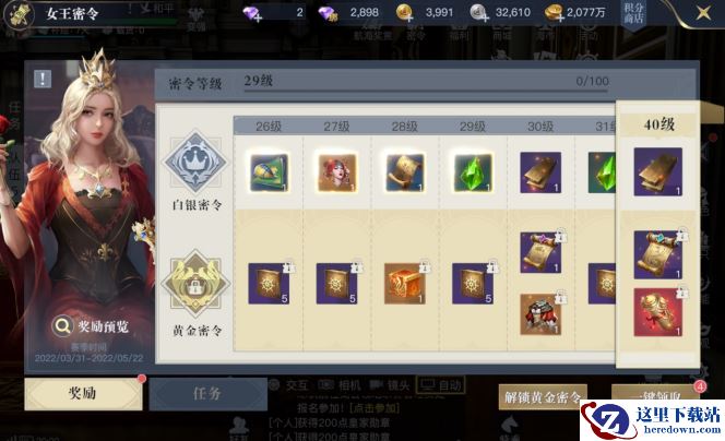 黄金密令需要花费128龙晶解锁,但奖励较之白银密令也更为丰厚。开启黄金密令后直接赠送5级密令等级,每级都有丰厚好礼相赠。每周都可以通过完成任务来提升密令等级,等级升满后可以获得大量珍稀资源,其中包含三种紫色藏宝图各一张。黄金密令是《黎明之海》游戏中最物超所值的礼包,大家可以根据自身情况购买。