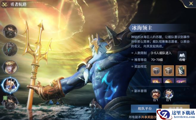 冰海领主的推荐挑战等级为70~79级,击杀首领有几率获得:绿色品质船甲、绿色品质船炮、蓝色品质船甲、蓝色品质船炮、紫色品质船甲、紫色品质船炮、橙色品质船甲、橙色品质船炮、70级绿色品质装备、70级蓝色品质装备、70级紫色品质装备、70级橙色品质装备、特级装备设计图、70级装备币及卓越魂石。