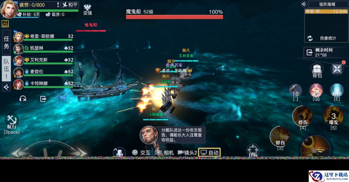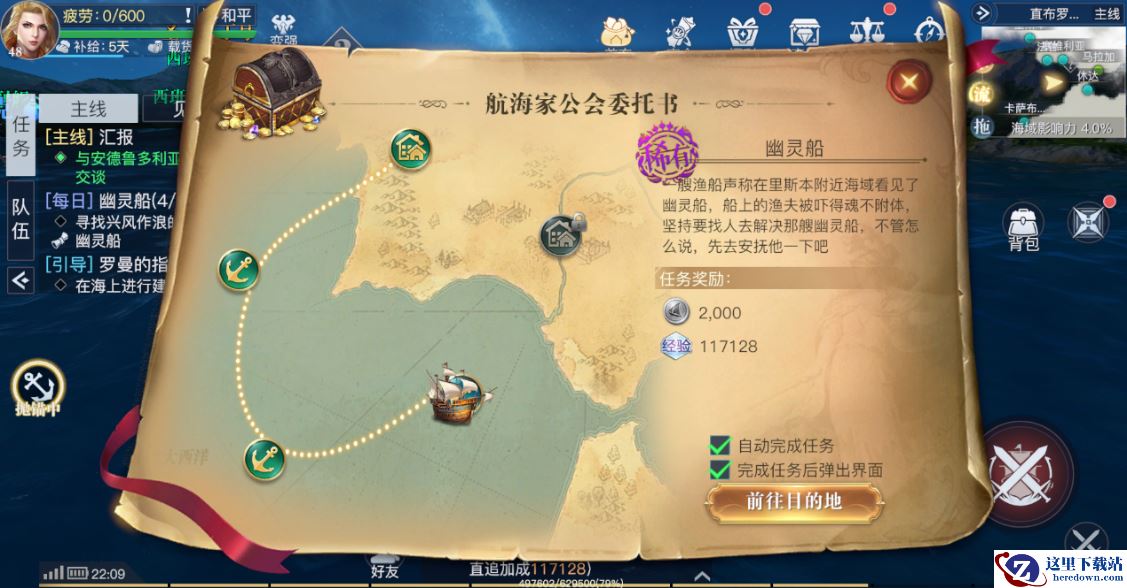 当我们组好队伍后,可根据引导前往任务海域,击败海盗团或是怪物副本即可获得奖励。获取的经验值奖励同样是按照完成次数逐级递增,建议将五次任务全部完成。