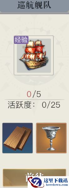 获得奖励除经验值外,还有随机装备、装备设计图、装备碎片(可兑换装备)、初级强化源石、初级突破石(强化突破船装)、25活跃度的奖励,每日只需完成一次即可获得全部奖励,是升级每日必打副本。