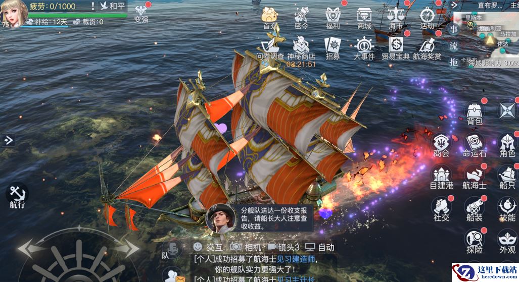 1、船只分为战舰与贸易船。战斗船只主要是用于海上作战、每日必做活动、攻占港口、海上霸主副本等。贸易船主要用于运输货物,在航速与货舱数量会比战斗船更高。