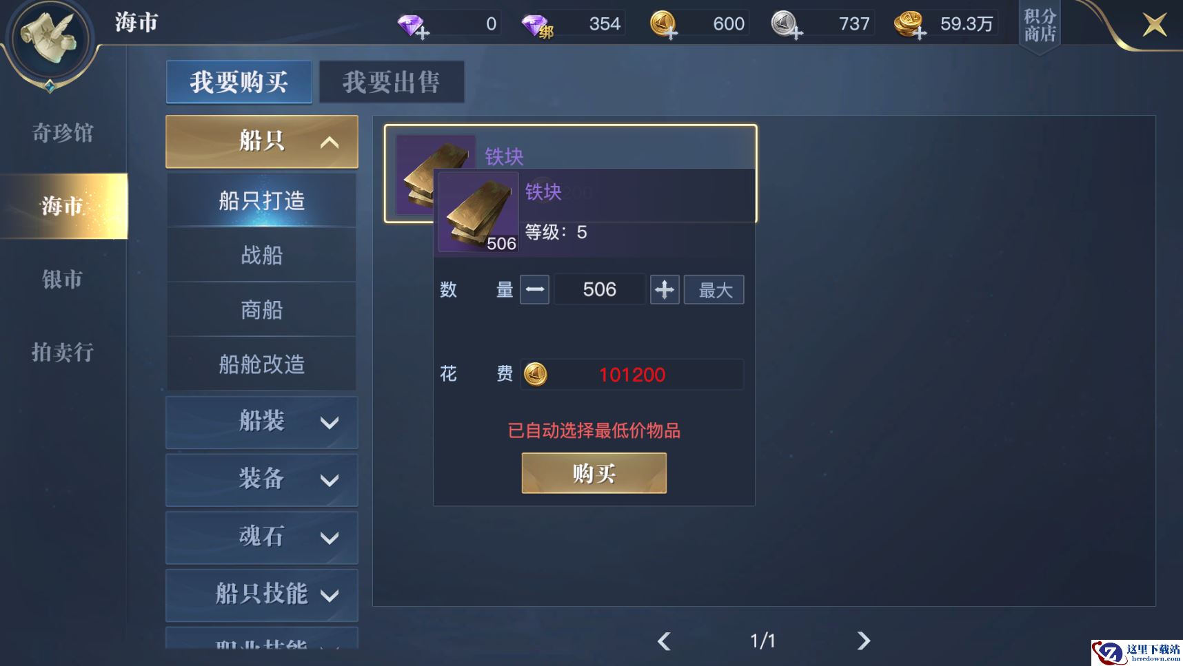 当我们等级大于5时通过海市中的船只打造购买到我们需要的铁块(无限制购买)。海市中要注意是否有库存!