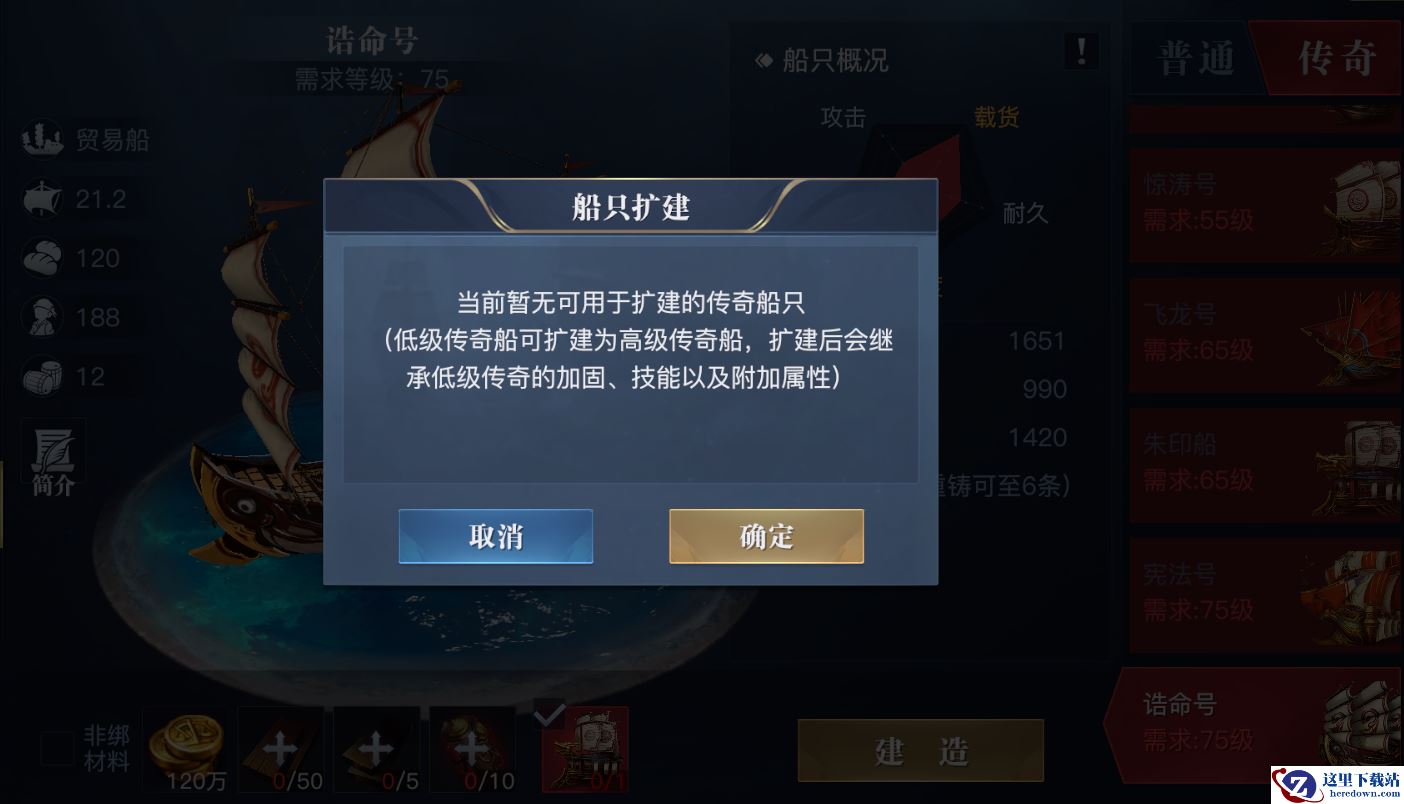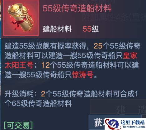 如果有多余的低级传奇材料,可以通过合成的方式获取更高阶的传奇造船材料!