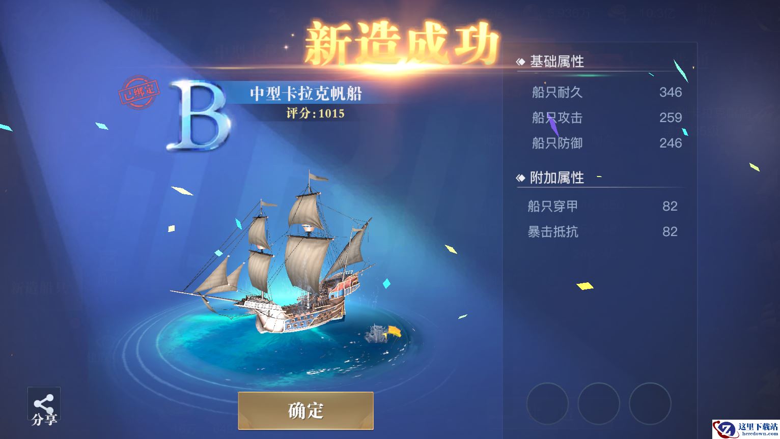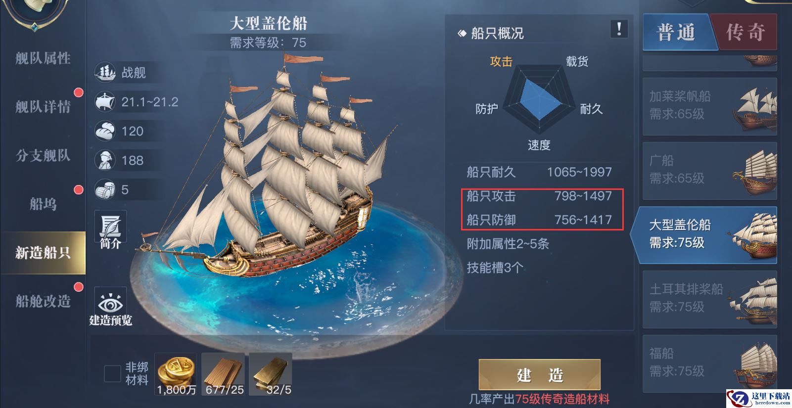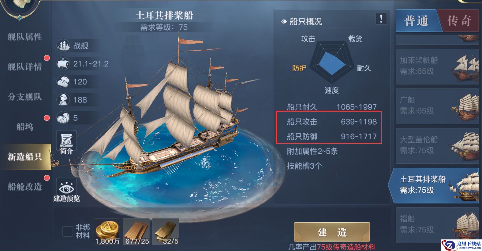 2、船只级别总共分为B、A、S、SS。B级船在建造中必出,属性最差。A级与S级船建造几率较低,属性较高带有附加属性。最高级的SS级船只,需特殊材料直接建造,是当前等级最高战舰!