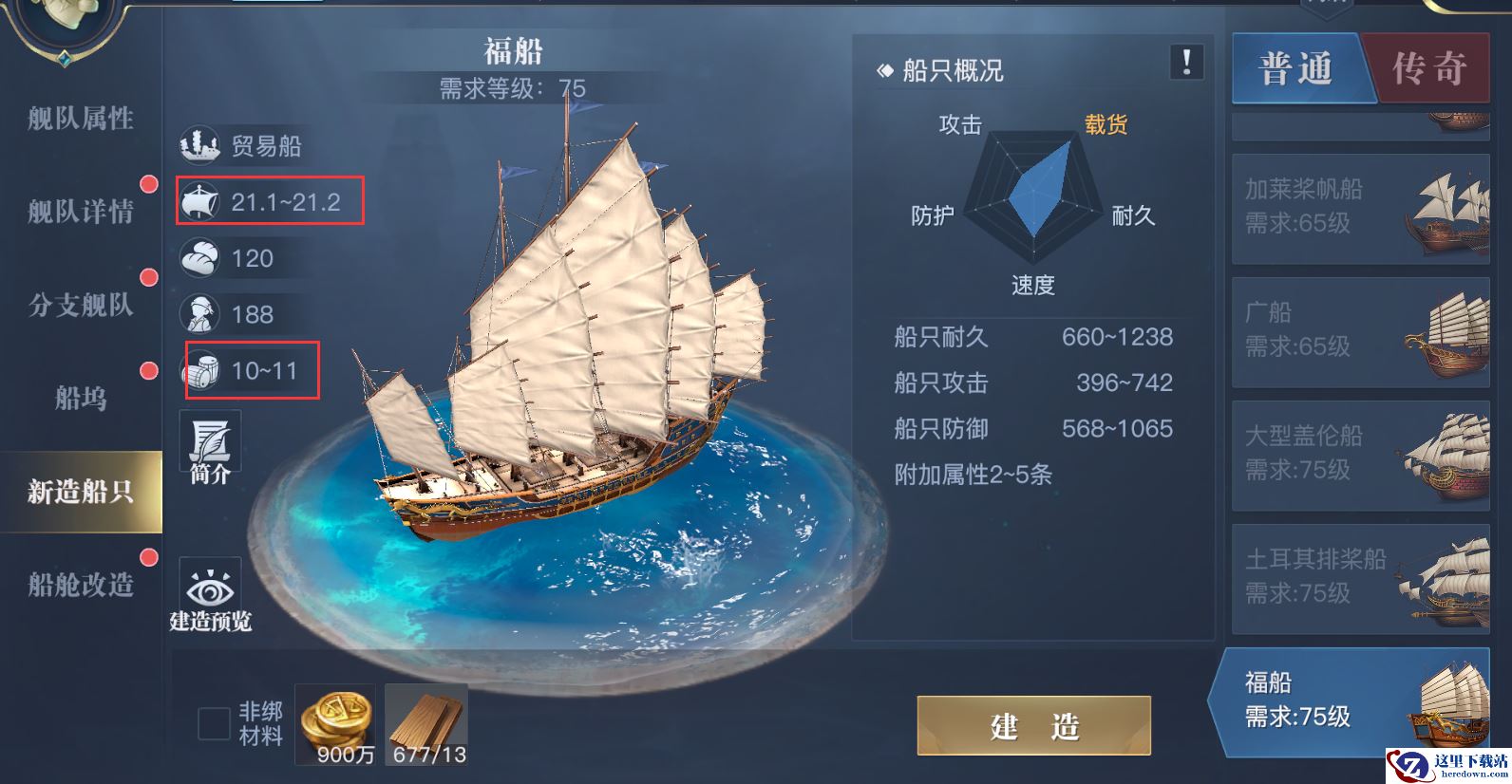 《黎明之海》里提升战力的相关系统有10余个,包括了技能、主舰队、船舱改造、船装、英灵印刻、装备、航海士、爵位、自建港、命运石、信仰、船首像、秘宝等等。其中,优秀的船只不仅可以提高海战实力,还能使得贸易收益更高。船队属性主要分为海战属性与贸易属性,每类船都有不同的属性特点,例如35级沙船的贸易属性就比35级中型卡拉克帆船的更高。在了解船只属性后,我们才能更有针对性地建造,避免浪费资源。本篇攻略主要为大家介绍船只建造材料与评价类型数值,以帮助大家更快了解船只玩法。