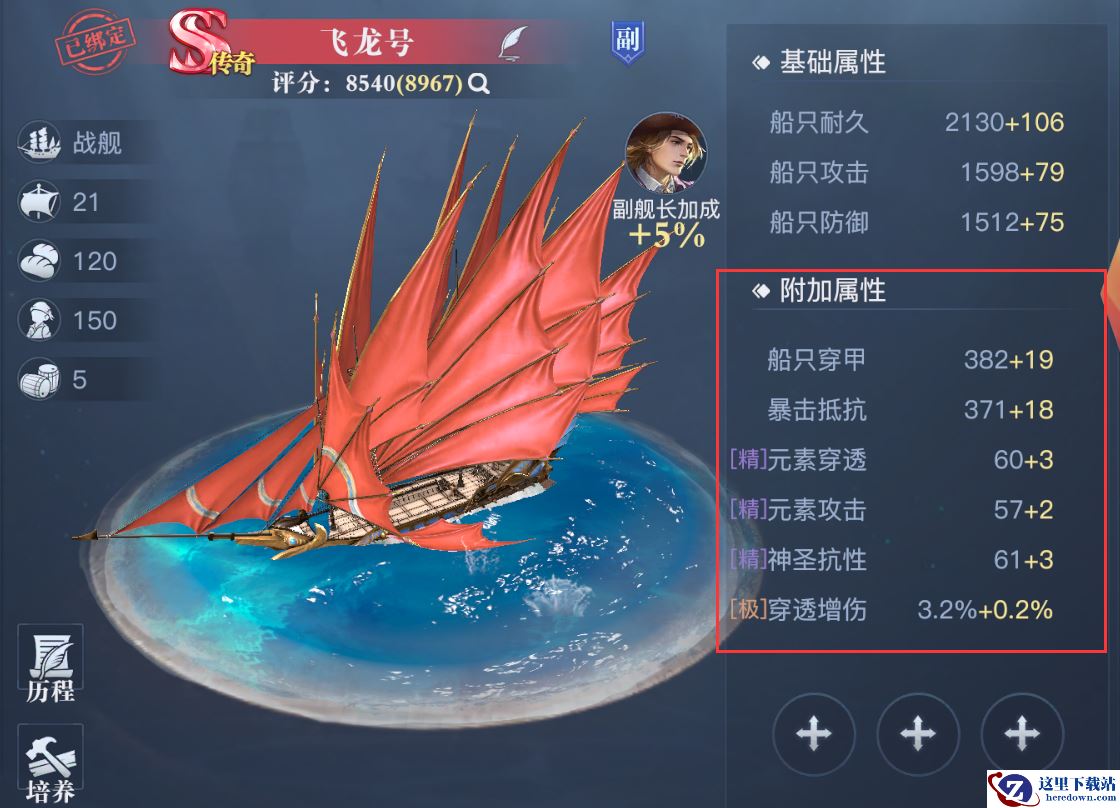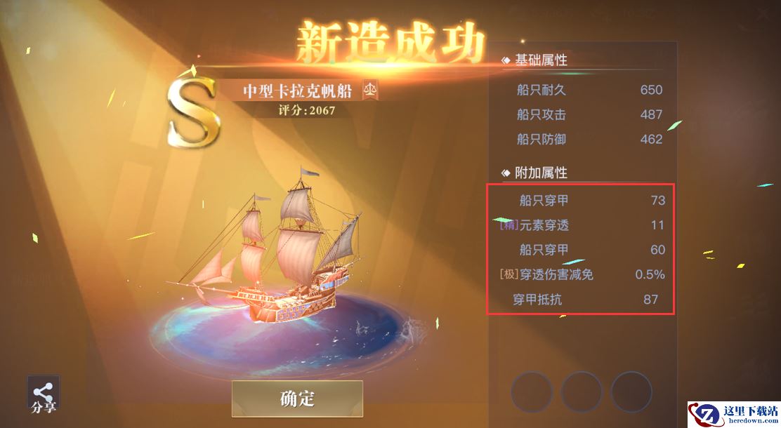 S级战舰的打造几率极低,会多出额外的随机2-5条附加属性和整体属性提升,由于前期升级较快,所以不必浪费赌低等级S战舰。