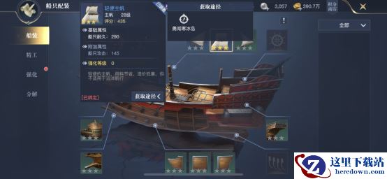 船装玩法里分为船装、精工、强化和分解四个玩法,首先看下船装。船装是给船只装备各种道具,比如船首,可以装备各种火炮、撞角和首楼,增加船只的攻击能力。在船身和船尾还可以装备对应的装备,可以提高船只的耐久、防御和各种抗性,这些属性可以大幅度提升船只的作战能力。获取方法上,可以从【勇者航路】、【勇闯寒冰岛】、【神秘梦境】等活动任务重获取。随着我们等级的提升,可以获取的船装也会越来越好,小伙伴记得及时更换新的船装。