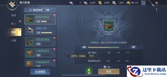 接下来是强化,船只强化是提升船装的属性,需要注意,同一部位的船装再更换时自动继承强化等级和属性,这样一来就不会造成我们替换船装时,造成材料浪费的情况了。我们在强化船装时需要消耗银币和强化源石,在到达一定强化次数后,需要进行突破,这时会消耗突破石。需要注意,我们将一定数量的船装强化至指定阶段时,还可以激活精进效果,增加更多额外属性。因此初级的强化,我们可以雨露均沾,将全部船装提升至对应等级,这样增加的属性会比单独强化某一个要高很多。在中后期,再根据角色的特性,侧重去提升所需要的属性即可。