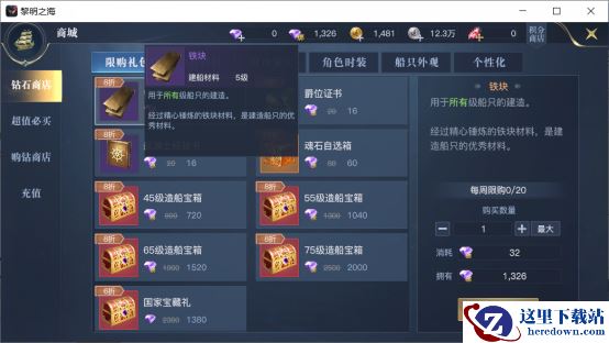 铁块是造船刚需,建议后期玩家攒的钻,这个限购每周买到上限。另外建议,玩家以造战斗船为主,并且在55级或65级后才开始怼S级,之前等级太低,造出很快就淘汰看。至于贸易船保证等级不落后的情况下,做到A级就够用了。