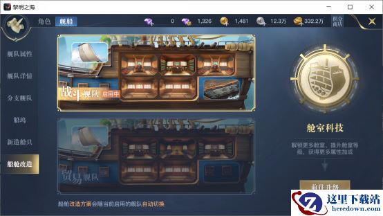这也是以战斗舰队与贸易舰队分开的玩法,通过给船舱改造,建造不同的舱室来加成舰队的对应属性。