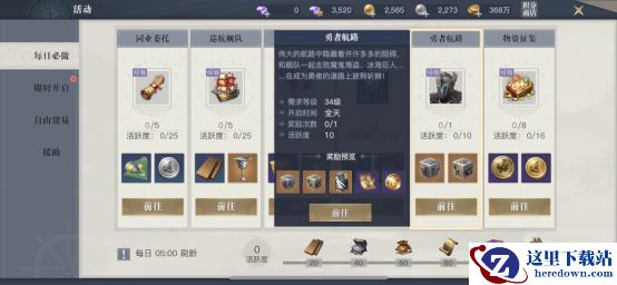 装备在别的游戏里可能是氪金的重点,毕竟装备打造、强化、升阶等,都需要大量的材料投入。不过在《黎明之海》手游里,装备玩法却并非如此,装备本身只需要获取穿戴即可。游戏里角色前期升级比较快,装备可以从【幽灵船长】每日必做活动任务获取。当角色提升至50级后,升级速度渐缓,我们可以通过活动【勇者航路】来获取紫色装备。紫色同系列装备会有套装加成,优先穿戴激活套装属性加成。同时积攒钻石和装备币,这样在60级时,通过装备商店或海市,购买橙色装备,将装备增加的属性加成最大化。
