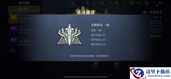 英灵印刻是给装备镶嵌各种魂石,用以增加船只的各项属性。需要注意,魂石除了增加基础属性,还有英灵觉醒的属性。因此我们前期按照1橙3紫的配置去镶嵌魂石,可以做到增加基础属性的同时,激活英灵属性,将战力加成最大化。由于魂石获取途径比较多,前期可以轻松做到1橙3紫。随后积攒足够的魂石碎片、钻石、勇士徽章等资源,在魂石商店、奇珍馆和积分商店中购买橙色魂石,这样凑齐4橙魂石配置,可以增加更高的属性与评分。