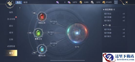 武器精通是角色在陆战时可以使用的技能,不同武器技能效果和外观都不同,比如刺剑,剑身纤细匀称,比较灵活,而双手剑则比较宽阔霸气,虽然笨重但威力十足。武器精通的等级会随着玩家等级而提升,我们只需要选择喜欢的武器即可。秘宝可以增加船只属性,这里分为星辰、森林和海洋三种,其中星辰和海洋,可以通过探险获取,森林之力则是在地图探索中获得,我们可以均衡去搜集这些材料,用来提升船只属性。