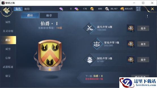 爵位的提升非常考验玩家的综合能力,战斗声望要通过单人挑战的征服者试炼获得,贸易声望则要通过投资商店用贸易币购买,探险声望则要探索地图才能获得